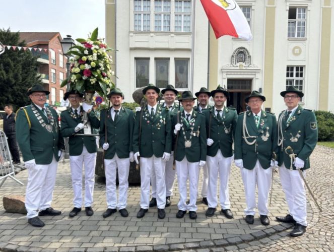 von links nach rechts: Thomas Petermann (Corpskönig 2024 & Spieß), Michel Lames (Kassierer), Martin Müller, Andre Lames, Kevin Petermann, Olaf Jonas (Zugkönig), Sebastian Buchholz, Guido Sonnen, Hartmut Becker (Hauptmann) & Thorsten Petermann ( Leutnant). Auf dem Foto fehlen: Heinz Peter Berrenbaum, Rene Becker und das neue Zugmitglied Frank Schmitz.